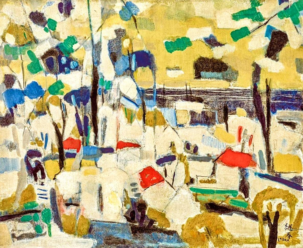 廖繼春的《風景》創作於1970年,正值藝術生涯的晚期。此時他已走過早年的印象派與野獸派探索,也經歷了對色彩強烈對比的執著,進而轉入更為自由、抽象的造型語言,以《風景》為例,帶有立體派與抽象表...more