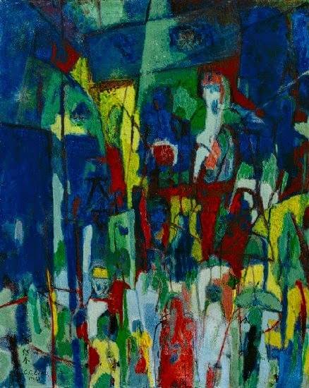 乍看這幅廖繼春老師作品,尺寸91 x 72.8公分,雖非巨幅,卻以濃烈的色彩張力與層疊的筆觸營造出龐大的精神能量,在為數不多的抽象畫中,情感豐富,能量巨大,尤其此作屬於難能可貴的&ldquo...more