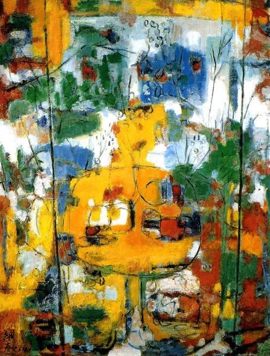 廖繼春為數不多的抽象畫,嚴格地從畫面審視:抽象與具象的比例超過50%以上的”半抽象畫“,大約有20幅,時間跨度約有十年,在當年保守畫壇,實屬罕見。而此幅是這些廖氏珍貴...more
