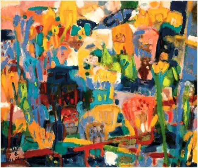 這是一幅讓人歡欣鼓舞,神采飛揚的抽象畫! 當我們面對《花園春景》,最直覺的感受就是「眼花繚亂」—色彩繁密、形象交疊,難以一眼看清楚名堂。然而,當視線逐漸適應,便可發現畫面的...more