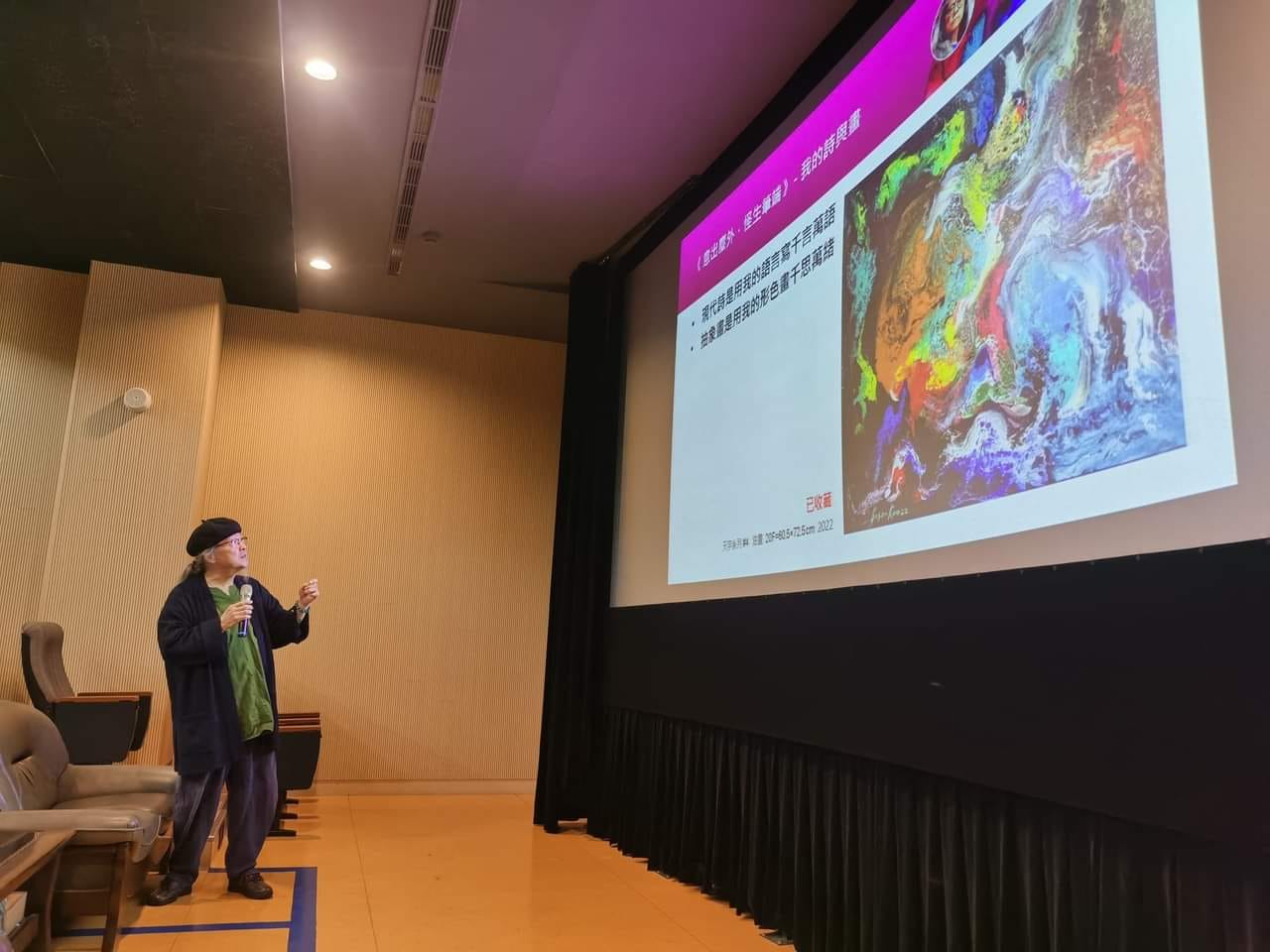 2023/10/24 應國立中央大學人文藝術中心主任李瑞騰教授之邀,講演《 意出塵外,怪生筆端 -- 我的詩與畫 》。 此堂運用許多本人歷史照片簡述五十年創作軌跡,並主秀數幅現代詩/抽象畫...more